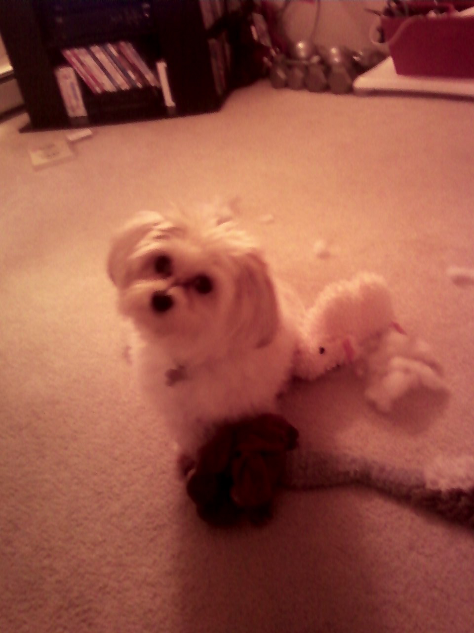 My mom & sister surprised me last Friday after I got done with jury duty. They were on their way to Fargo to pick up a puppy at the pet store!! He was such a cutie!! She later named him Cooper! He's a maltese chiwawa mix.